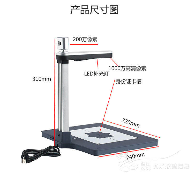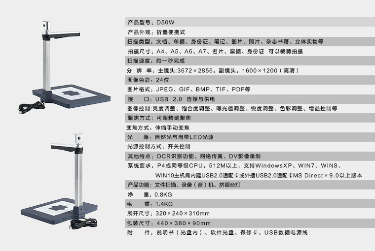 虹鼎D50W1000万像素高拍仪A4双镜头人像扫描仪高清证件拍摄仪