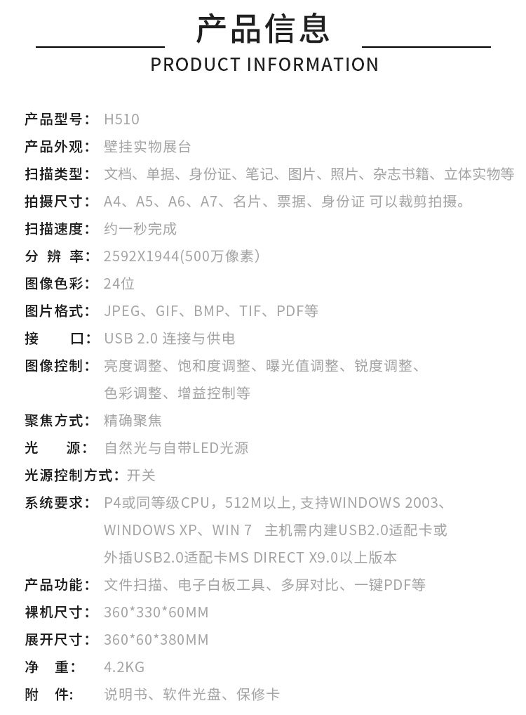 虹鼎H510壁挂实物展台高清教学视频展台实物投影仪高拍仪500万