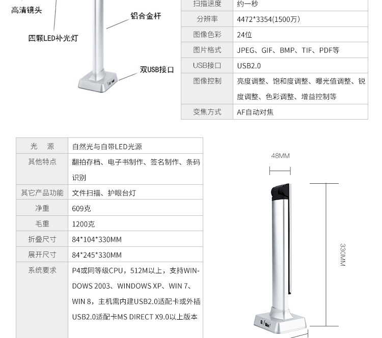 虹鼎BK32高拍仪1500万像素高清智能办公扫描仪便携文档拍摄仪热卖